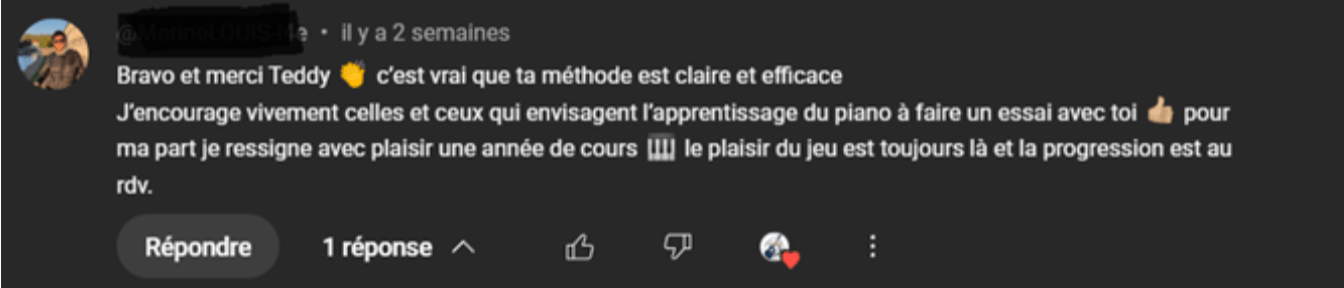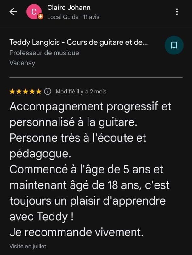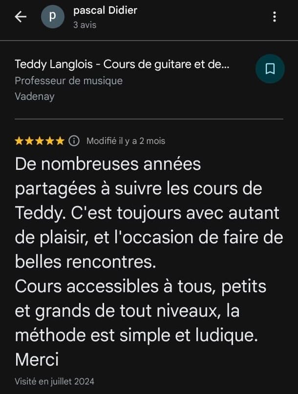 ⭐⭐⭐⭐⭐ “Grâce à Teddy, j’ai joué mon premier morceau sans frustration. C’est motivant et ça change tout !”